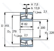 Аналог сферического роликового подшипника 23040-E1A-M-C3 — это подшипник такого же размера dx200,Dx310,Bx82, типа и конструкции.