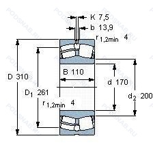 | 170RUB32 | Роликовый радиальный сферический однорядный подшипник. | 170.00 | 310.00 | 110.00 |