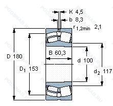 | 23218B D1 C4 | Внутренний зазор подшипника больше. чем C3. Цельное ребристое внутреннее кольцо. Асимметричные ролики и фиксатор с центральной направляющей. Канавка для смазки и три отверстия во внешнем кольце подшипника. |