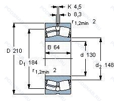| 23126AX | Поверхность контакта скольжения сталь / сталь. |