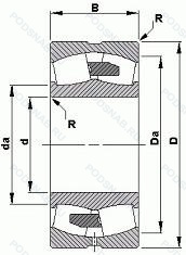 | 23948CC/W513 | Два стальных сепаратора оконного типа. Бесфланцевое внутреннее кольцо и направляющее кольцо центрировано на внутреннем кольце. Комбинация W26 (шесть смазочных отверстий во внутреннем кольце) и W33 (смазочная канавка и три отверстия во внешнем кольце подшипника). |