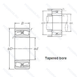 | 23232-E1A-K-M + AH3232G | Коническое отверстие. Конусность 1/12. Подшипник с латунным сепаратором. центрированный по телам качения. |