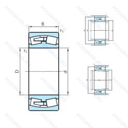 | 23144-CE-K-W33 | Канавка для смазки и три отверстия во внешнем кольце подшипника. Коническое отверстие. конус 1/12. Имеют симметричные сферические ролики и стандартно оснащены сепаратором из штампованной стали. |