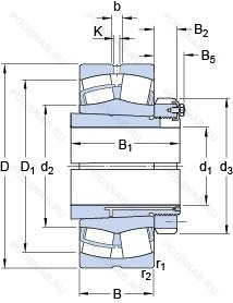 | 23056W33 | Кольцевая канавка и три отверстия для смазывания в наружном кольце подшипника. |