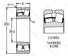 | 22336 KW33 | Кольцевая канавка и три отверстия для смазывания в наружном кольце подшипника. Коническое внутреннее отверстие. |
