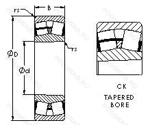 | 23136 KCW33+AH3136 | Кольцевая канавка и три отверстия для смазывания в наружном кольце подшипника. Коническое внутреннее отверстие. |