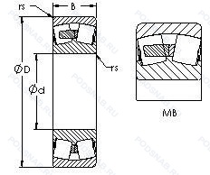 Модификации сферического роликового подшипника 24138MB — это измененное основное конструктивное исполнение 24138, основные размеры (190x320x128) не отличаются.