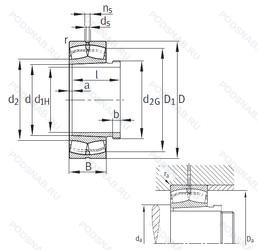 | 22338 KCW33+H2338 | Кольцевая канавка и три отверстия для смазывания в наружном кольце подшипника. Коническое внутреннее отверстие. |