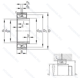 | 23148 KCW33+AH3148 | Кольцевая канавка и три отверстия для смазывания в наружном кольце подшипника. Коническое внутреннее отверстие. |