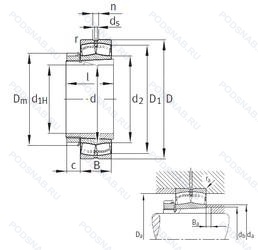 | 23238 KCW33+AH3238 | Кольцевая канавка и три отверстия для смазывания в наружном кольце подшипника. Коническое внутреннее отверстие. |