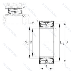 | 24138 K30W33 | Кольцевая канавка и три отверстия для смазывания в наружном кольце подшипника. Коническое внутреннее отверстие. |