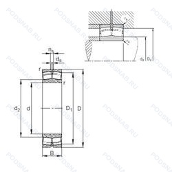| 24176 K30W33 | Кольцевая канавка и три отверстия для смазывания в наружном кольце подшипника. Коническое внутреннее отверстие. |