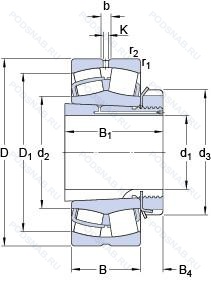 | 22244 W33 | Канавка для смазки и три отверстия во внешнем кольце подшипника. |
