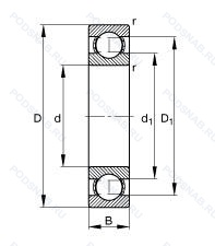 | Обозначение | Конструктивные особенности | Внутренний (d) | Наружный (D) | Ширина (B) |