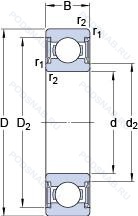 | Обозначение | Конструктивные особенности | Внутренний (d) | Наружный (D) | Ширина (B) |