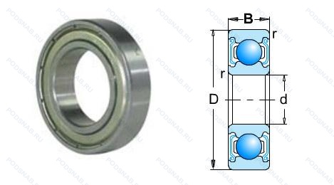 | Обозначение | Конструктивные особенности | Внутренний (d) | Наружный (D) | Ширина (B) |