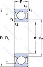 | Обозначение | Конструктивные особенности | Внутренний (d) | Наружный (D) | Ширина (B) |