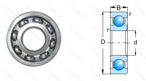 | Обозначение | Конструктивные особенности | Внутренний (d) | Наружный (D) | Ширина (B) |