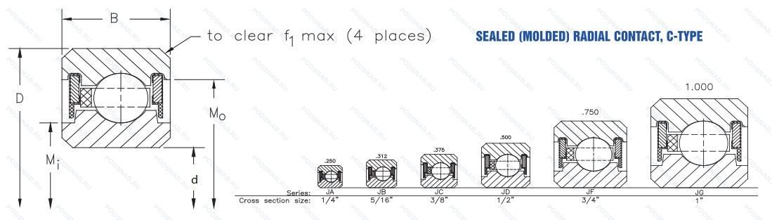 | JB035CPO | Радиальный контакт. Standard Formed Ring “Snap-Over” Type (Material—Brass Or Non-Metallic Composite). Класс точности 1 по стандарту ABEC 1F. |