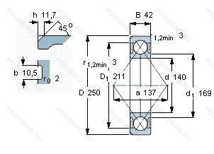 Размер подшипника: 140x250x42 мм.