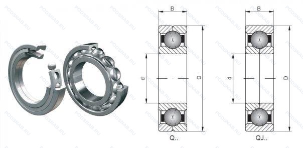 | QJ314 | Штампованный сепаратор из стального листа. Шариковый подшипник с четырех-точечным контактом. Основное конструктивное исполнение. |
