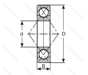 | Обозначение | Конструктивные особенности | Внутренний (d) | Наружный (D) | Ширина (B) |