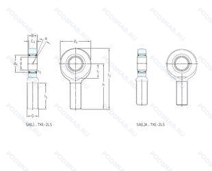 Модификации шарнирного наконечника SA50TXE-2LS — это измененное основное конструктивное исполнение SA50, основные размеры не отличаются.
