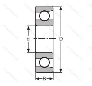 | Обозначение | Конструктивные особенности | Внутренний (d) | Наружный (D) | Ширина (B) |