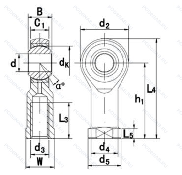| GIKR6PB | ISO | Поверхность скользящего контакта сталь/бронза, соответствует ISO 12 240-1, размер серии K, для валов от 5 мм до 30 мм.. |