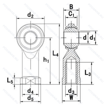 | KI16 | Сферический шарнирный подшипник. Основное конструктивное исполнение. |