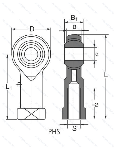Аналог шарнирного наконечника PHS25L — это наконечник такого же размера dx25,Dx60,Bx36, типа и конструкции.