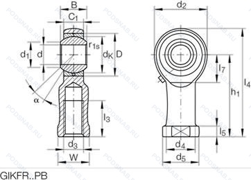 Модификации шарнирного наконечника GIKFR14PW — это измененное основное конструктивное исполнение GIKFR14, основные размеры (14x76x16) не отличаются.