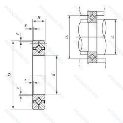 | Обозначение | Конструктивные особенности | Внутренний (d) | Наружный (D) | Ширина (B) |