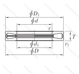 T661 — Роликовый упорный однорядный подшипник, основное исполнение, выпускается производителями: KOYO, TIMKEN.