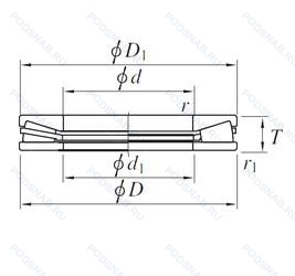 | 8-9019436 К | Роликовый упорный одинарный подшипник. Кольцевая проточка на середине цилиндрической наружной поверхности наружного кольца плюс три отверстия для смазки. | 180.00 | 360.00 | 109.00 |