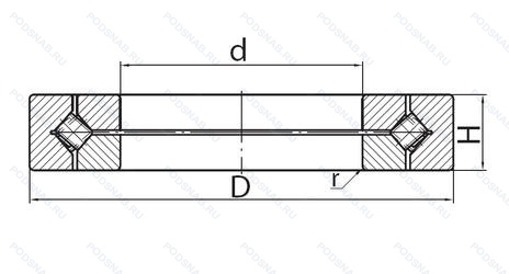 | Обозначение | Конструктивные особенности | Внутренний (d) | Наружный (D) | Ширина (B) |