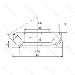 | 29424-E1-N1 | Конструкция с увеличенной грузоподьемностью. Один установочный паз на внешней кромке наружного кольца (для радиального расположения подшипника). |