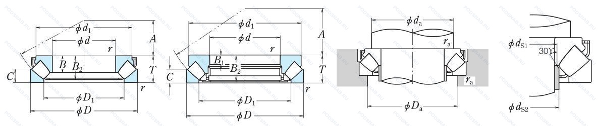 | 29432-E-N1 | Повышенная грузоподъемность. Один установочный паз на внешней кромке наружного кольца (для радиального расположения подшипника). |