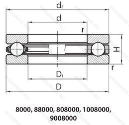 | 8320 | Шариковый упорный однорядный подшипник. Основное конструктивное исполнение. |