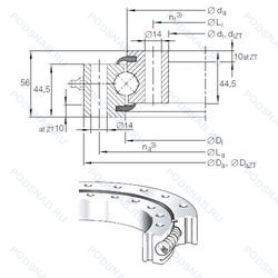 | VSU200844-VSP-ZT | Для монтажа с кольцом L-образного сечения с осевой опорой в серии YRT. При монтаже серии YRT с кольцом L-образного сечения. опирающимся в осевом направлении по всей поверхности. Происходит увеличение осевой жесткости в направлении опорного кольца в зависимости от жесткости опорного кольца и наклонной жесткости до 20%. В этом случае Необходима проставка с другим подбором преднатяга. Центрирование на внутренних и внешних кольцах. |