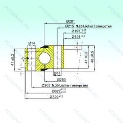 Модификации шарикового подшипника NB1.20.0260.202-1PPN — это измененное основное конструктивное исполнение NB1, основные размеры (191x329x46) не отличаются.